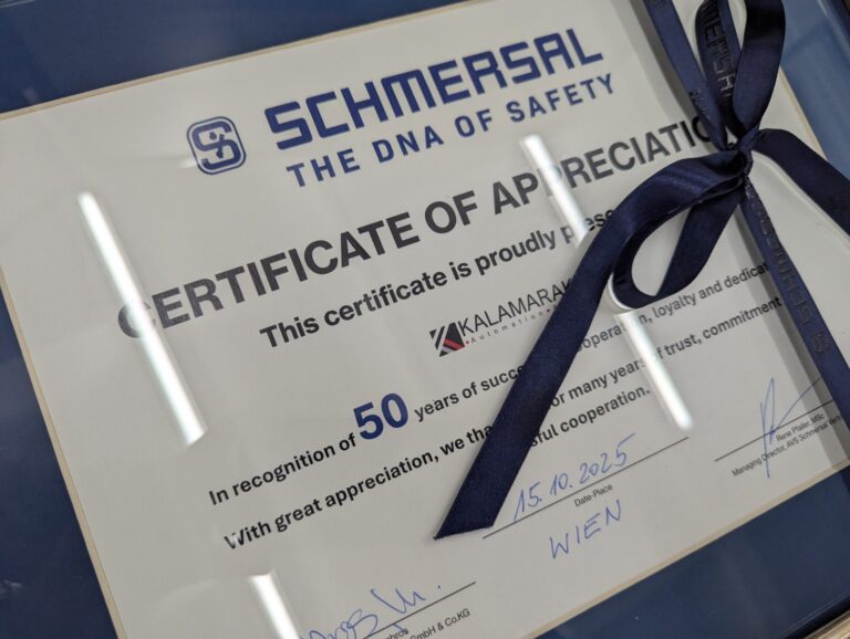 Από το 1975, η Καλαμαράκης Αυτοματισμοί είναι ο επίσημος διανομέας προϊόντων SCHMERSAL στην Ελλάδα, προσφέροντας στην ελληνική βιομηχανία καινοτόμες λύσεις για την ασφάλεια χειριστών και μηχανών.